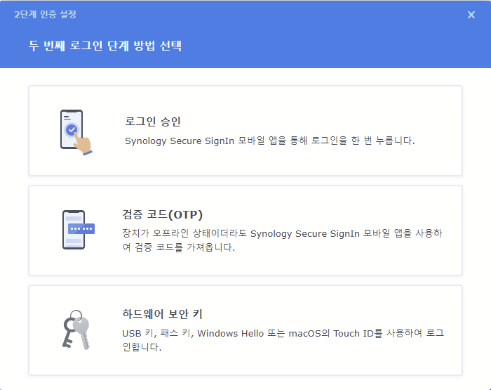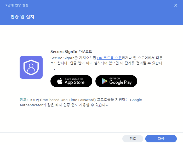 다음은 Synology NAS에서 2차 인증을 설정하는 방법입니다.