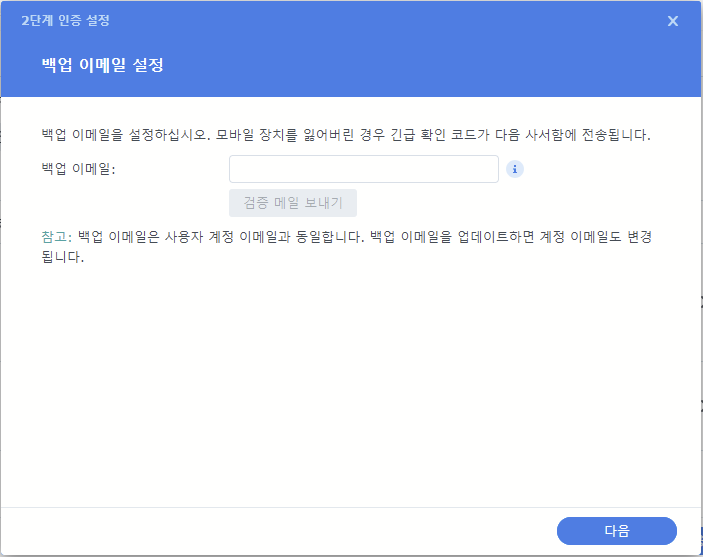 - 백업 이메일 설정: 모바일 장치를 잃어버린 경우를 대비해서 백업 이메일 설정